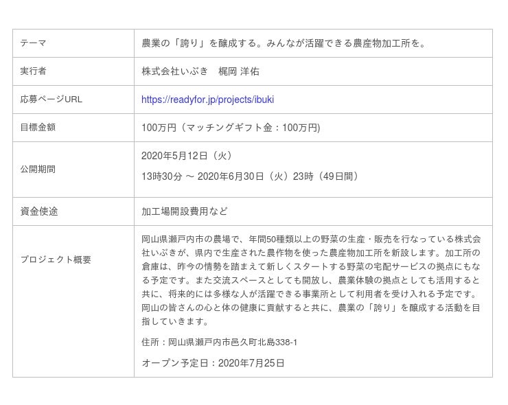 採択されたプロジェクトは「READYFOR SDGs × 大和リース」の特設ページにおいて2020年8月上旬(プロジェクトにより異なる)まで支援募集を行います。また目標金額を達成したプロジェクトに対しては、大和リースからクラウドファンディングの目標金額と同額の資金(マッチングギフト金)を寄付させていただきます。その後、プロジェクトが順次実施される予定です。