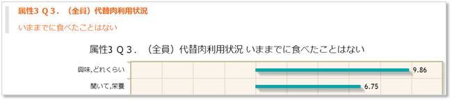 喫食未経験者は、代替肉に対して関心の低さやマイナスイメージをもっておりトライアルにつながっていないようです。未経験は6割以上のため、イメージ改善によりトライアル機会を増やす施策が必要そうです。