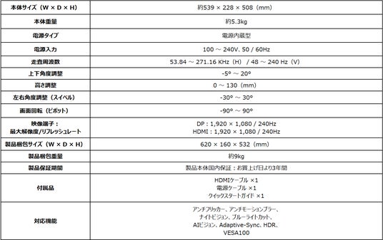 ・240Hzの高リフレッシュレート
