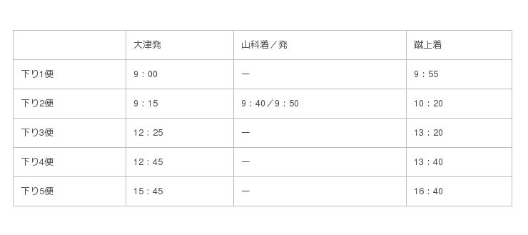 ※上記は大津~蹴上間の料金です(山科発着料金は後日発表)
