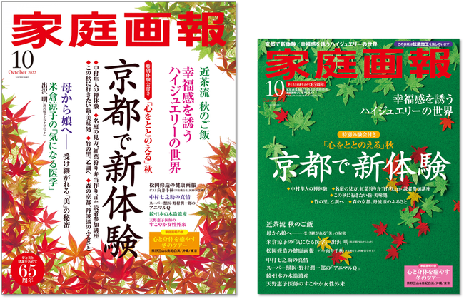 株式会社世界文化社は、9月1日発売『家庭画報10月号』京都で新体験のCMを、日本BS放送株式会社(BS11)にて8月29日(月)より放映します。また、TV番組「京都画報」(KBS京都/TOKYO MX/BS11)に『家庭画報』千葉由希子編集長が出演。『家庭画報10月号』(9月1日発売)京都特集で掲載するお店をご紹介します。