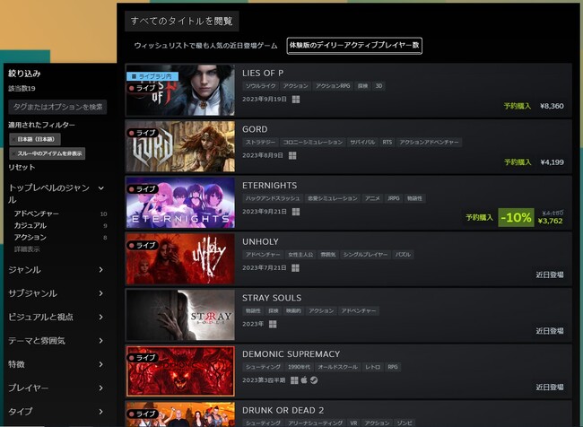 『Lies of P』は、本日6月27日の2時に終了となりました、「Steam Next Fest」において「ウィッシュリストで最も人気の近日登場ゲーム」と、「体験版のデイリーアクティブプレイヤー数」で1位をそれぞれ獲得いたしました。