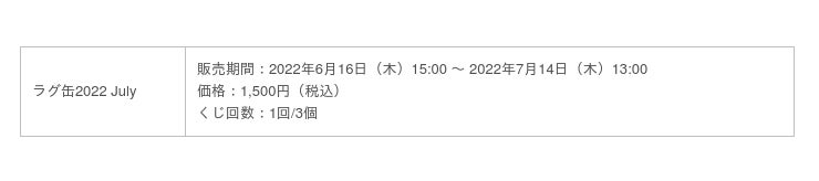 2022年6月16日(木)15:00より、「ラグ缶2022 July」の販売を開始いたします。