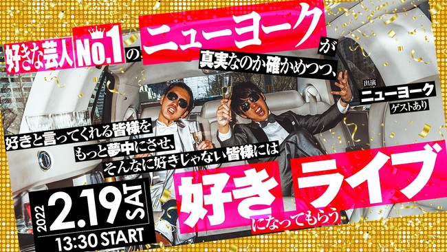 好きな芸人No.1ニューヨークが真実なのか確かめつつ、好きと言ってくれる皆様をもっと夢中にさせ、そんなに好きじゃない皆様には好きになってもらうライブ