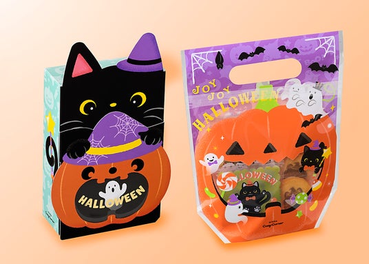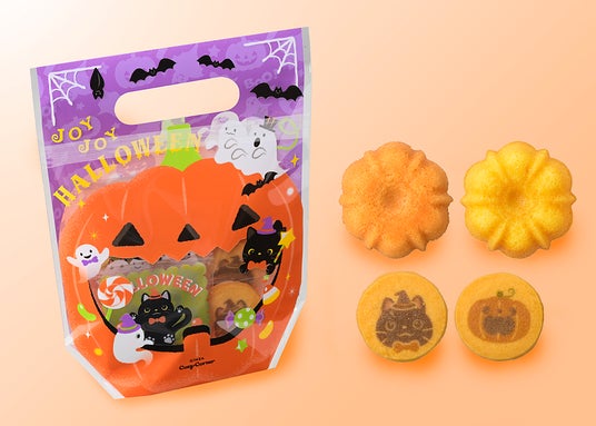 「JOYJOYハロウィン 黒ねこボックス」は、前面のかぼちゃのフタを開けると、黒ねこがおばけを食べていたり、スイーツを食べていたり、遊び心あるデザインで4種類をラインアップ。「JOYJOYハロウィン ギフトバッグ」は“ジャック・オ・ランタン”をデザインした持ち手付きのバッグで、小さなお子様でも持ちやすくプチギフトにぴったりです。さらに中に詰め合わせたマドレーヌの個包装やクッキーのデザインまでハロウィン柄で、パッケージから出してもハロウィン感満載♪