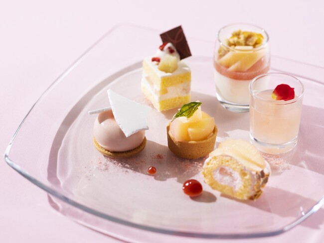 桃がテーマのメインスイーツと、定番のクラシックスイーツに加えてセイボリーもブッフェスタイルでお愉しみいただけます。