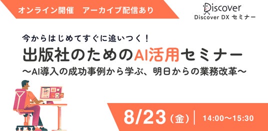株式会社ディスカヴァー・トゥエンティワン(本社:東京都千代田区、代表取締役兼社長執行役員:谷口奈緒美)は、2024年8月8日(木)に開催した出版業界向けにAI活用セミナーの好評をうけ、8月23日(金)にオンラインでの追加開催を決定いたしました。セミナーでは、AI導入の成功事例や具体的な活用ステップ、生成AIを取り巻く法律関係の情報を提供します。