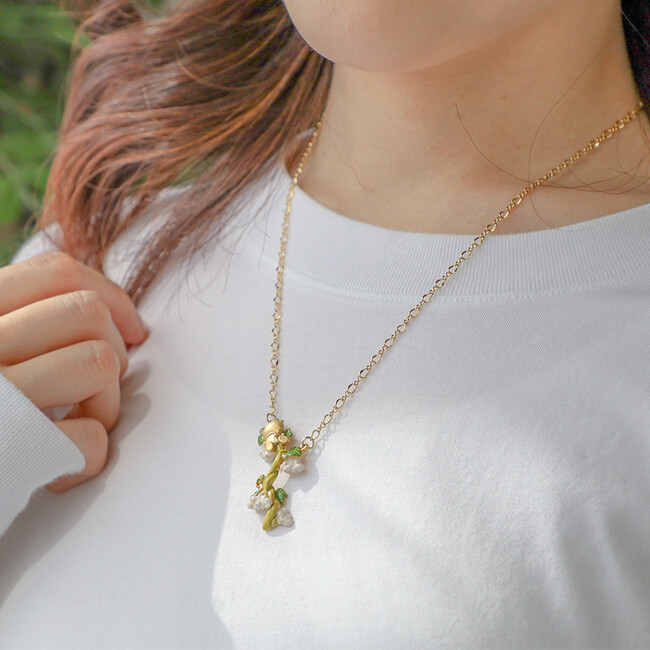 繊細な造形で、あたたかみのあるナチュラルな色合いのアクセサリーは、シーンを問わず様々なコーディネートに合わせやすく、この春のお出かけにぴったりのアイテムです。