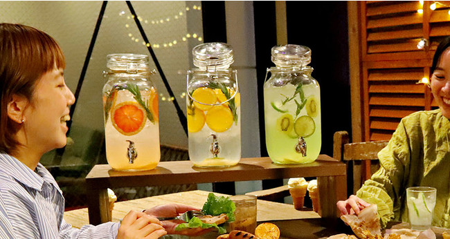 ・ビールなし飲み放題 1300円(写真のフルーツウォーターを使ったカクテル付き)