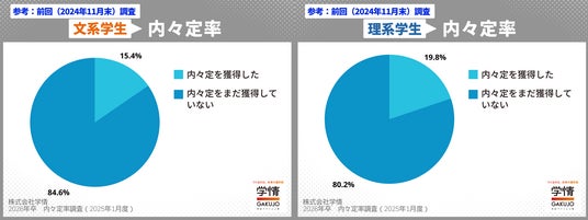 文理別でみると、文系が前月比17.6ポイント増の「33.0%」、理系が前月比24.0ポイント増の「43.8%」で、いずれも11月末調査を上回る結果となりました。特に理系は伸びが際立っており、早くも4割を超える結果となっています。