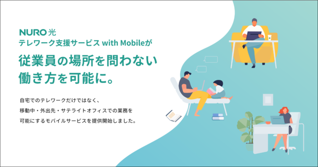 今回提供を開始する「NURO 光 テレワーク支援サービス with Mobile」は、自宅などでの在宅勤務時の光回線に加え、モバイル回線と持ち運びができるモバイルルータにより、移動中や外出先でもシームレスにセキュアで安定した回線で業務ができるようになるサービスです。