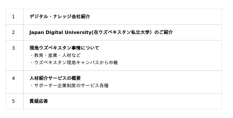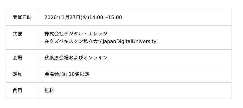 株式会社デジタル・ナレッジ×在ウズベキスタン私立大学JapanDigitalUniversity共催セミナー~新卒外国人IT人材の採用にご興味をお持ちの方向け