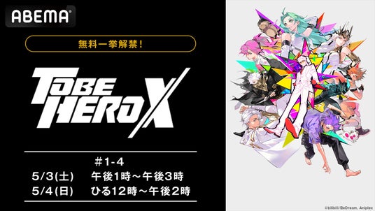 新しい未来のテレビ「ABEMA」は、ゴールデンウィークにあわせ、2025年5月3日(土)、4日(日)に、新作春アニメ『TO BE HERO X』の作品初となる無料振り返り一挙放送を実施いたします。