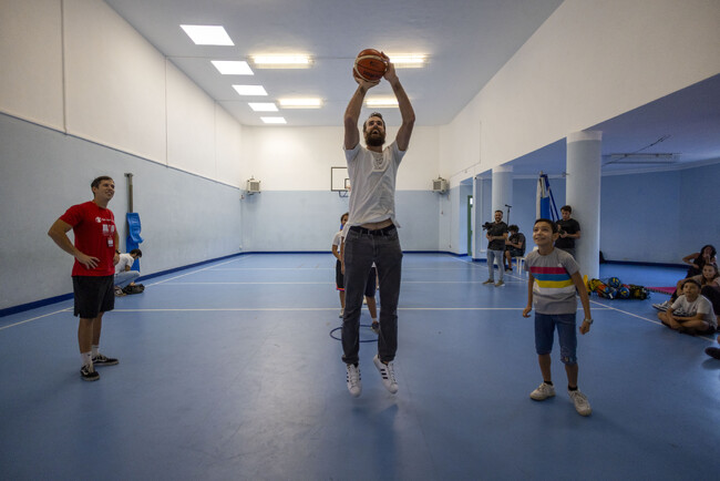 ローマ近郊オスティアにあるブルガリとセーブ・ザ・チルドレンの学校「Punto Luce delle Arti(プント・ルーチェ・デッレ・アルティ)」においてイタリアのバスケットボールチャンピオン、ルイージ・ダトメが若者たちにスポーツが持つ価値を伝えるマスタークラスを開催しました。