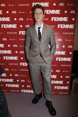 俳優のジョージ・マッケイは、2023年11月28日にロンドンで開催された“Femme” (原題)のスクリーンガラに、キム・ジョーンズによるディオールのクリエイションを纏って登場しました。
