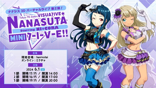 株式会社DONUTS(東京都渋谷区、代表取締役:西村啓成)がApp Store及びGoogle Playにて提供中のスマートフォン向けゲームアプリ『Tokyo 7th シスターズ THE SKY’S THE LIMIT』(略称:ナナシス)は、2024年6月1日(土)に開催される、3Dバーチャルライブ第二弾「Tokyo 7th SistersVISUALIVE(ビジュアライブ) NANASUTA MINI LIVE Starring NI+CORA(二コラ)」の現地会場チケットの最速先行受付およびオンライン視聴チケットの販売を開始いたしました。