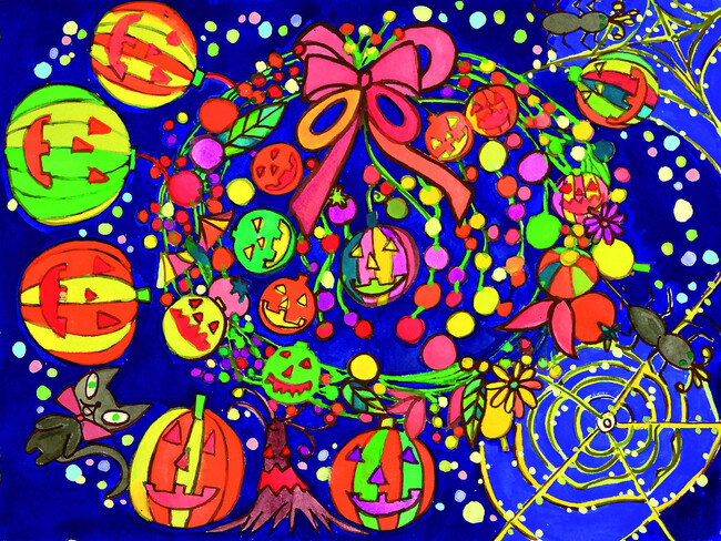 ▲「ハロウィンのリース」醍醐 恵子 32×41cm