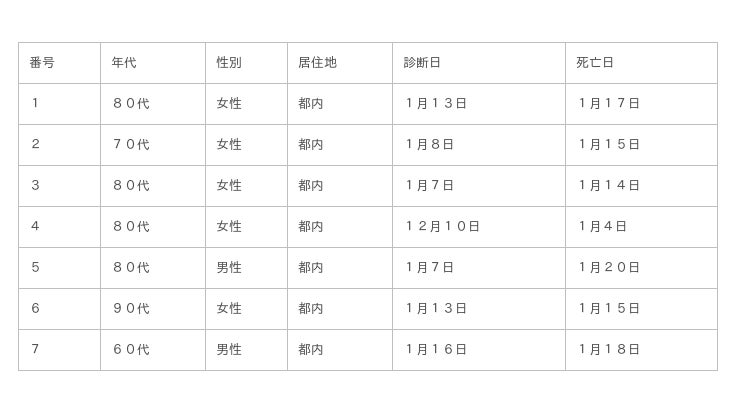 都内で新型コロナウイルスに感染した方が死亡されましたのでお知らせします。