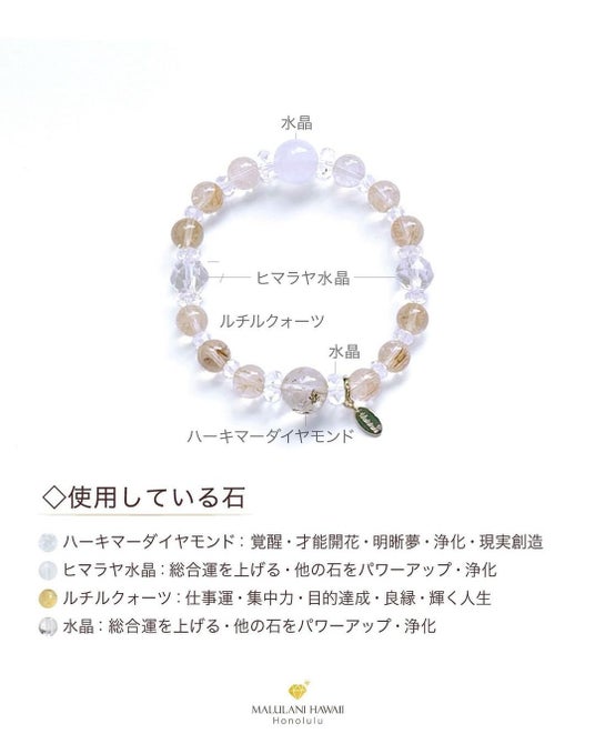 ルチルクオーツ、ハーキマーダイアモンドが目的達成、願望成就をサポートするお守りブレスレット