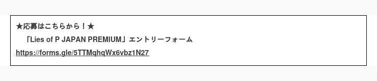 <オフラインイベント「Lies of P JAPAN PREMIUM」実施概要>