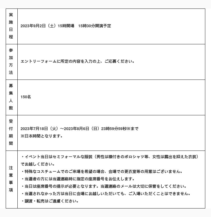 ~9月2日(日)東京「ユナイテッド・シネマ豊洲」にて!本日より募集開始~