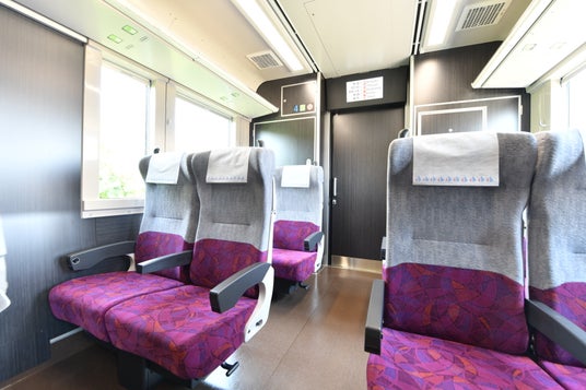 普通列車グリーン車は、ゆったりとした座席と落ち着いた空間を楽しめる有料サービスです。