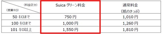 普通列車グリーン車をご利用の際は、運賃のほか、以下の追加料金が必要です。Welcome Suica Mobileでご利用の際は紙のきっぷよりおトクな「Suicaグリーン料金」が適用となります。