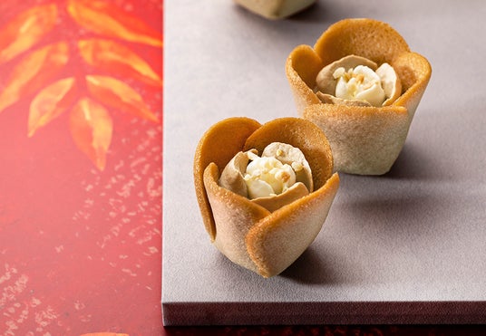 イタリア産マロンパウダーを練りこみ香ばしく焼き上げたチューリップラングドシャの中に、マロンの香り豊かなショコラクリームローズを咲かせた『チューリップローズ モンブラン』。芳醇イタリア栗香るショコラクリームに、まろやかな和栗香るショコラクリームを重ね合わせたダブルマロン仕立て!栗本来のほっくりとした美味しさがお口いっぱいに広がります。