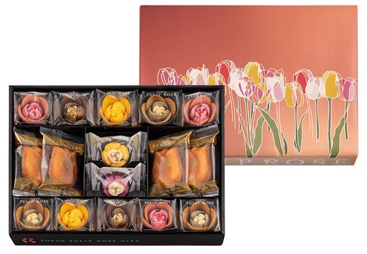 ふたを開けると、まるで“スイーツの花園”が広がる『チューリップローズ ギフト』。秋限定『チューリップローズ モンブラン』まで、7種のお花スイーツをたっぷりとお楽しみいただけるギフトボックスです。秋にぴったりな深みあるパッケージデザインは、敬老の日の贈り物にも!お花スイーツがたっぷり楽しめるギフトボックスで、感謝の気持ちを伝えてみてくださいね。