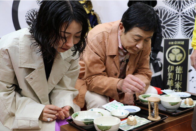 次に2人は全国一の玉露を体験。1kg100万円で取引されたこともある地元産玉露の香りと旨みに感動します。