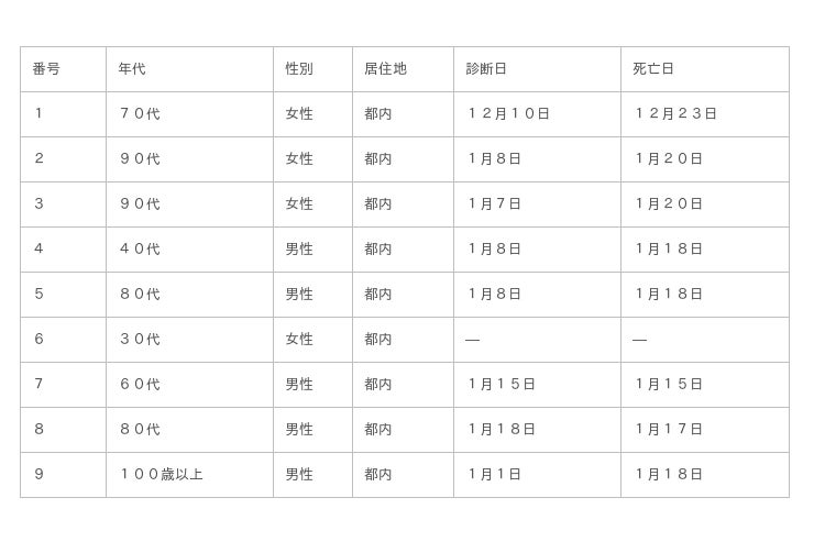 都内で新型コロナウイルスに感染した方が死亡されましたのでお知らせします。