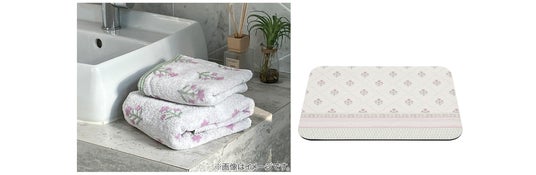 本シリーズは、淡いパープルを基調とした春を感じる花柄で、水回りの定番アイテムをまとめて展開します。タオル、バスマットに加えトイレマット、トイレスリッパ、トイレカバーもご用意し、同一柄でのコーディネートが可能です。シリーズとして揃えることで簡単に選べて、統一感のある空間づくりができます。