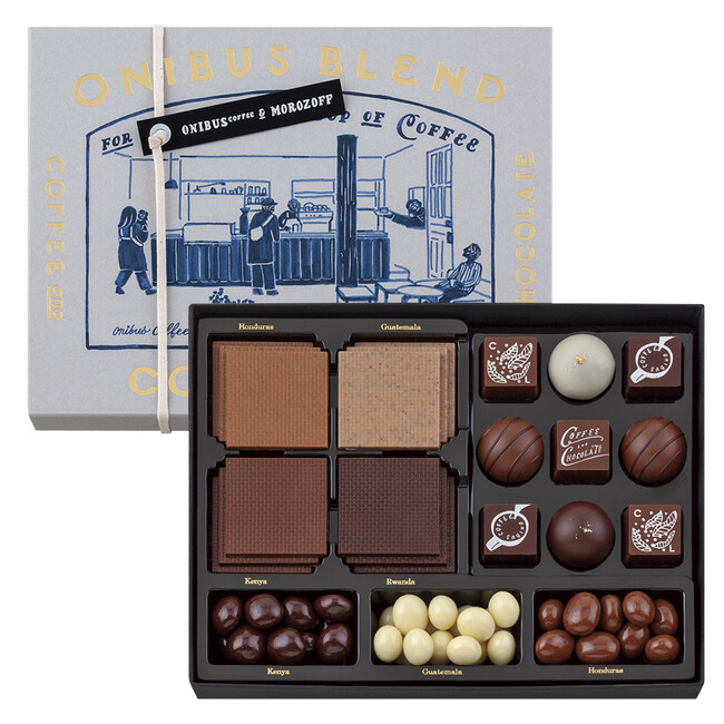 コーヒー豆を産地から厳選しこだわり抜いた一杯を提供する「オニバスコーヒー」と「モロゾフ」がコラボ。理想のコーヒー豆との出逢いが生み出すチョコレートの新しい魅力をご提案。手描きアーティストchalkboyとのコラボによるタンブラーも。「コーヒーラボ(モロゾフ×オニバスコーヒー)」オニバスブレンド(21個入り、オニバスビーンズ60g、日本製)2,268円/ONIBUS BLEND(100g)788円/MiiR ONIBUS ORIGINAL TUMBLER 8oz(1個)2,970円