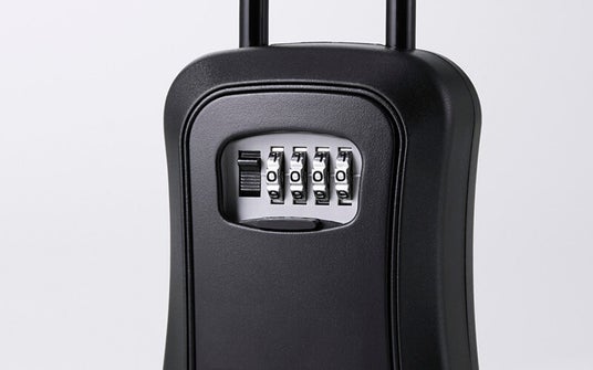 鍵やカードキー、車の鍵などの貴重品をボックス内に保管できる、4桁ダイヤル式ロックを採用したセキュリティキーボックスです。U字フックをドアノブに掛けたりハンドルなどに通したりして設置できます。扉などを開けるために人が立ち会う必要がなく、訪問側も待たされることなく、鍵を保管したボックスを解錠できます。