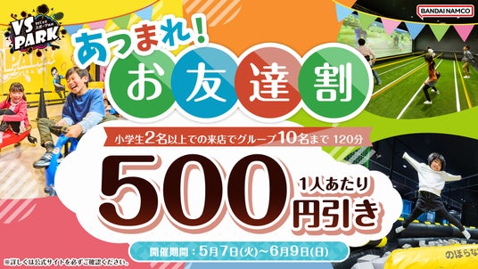 株式会社バンダイナムコアミューズメントが運営する屋内“ヤバすぎ”アクティビティ施設『VS PARK』では、学生グループに向けた「あつまれ!お友達割」と「おそろ割」2種のお得な割引プランを2024年5月7日(火)から開始します。