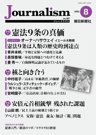 株式会社朝日新聞社(代表取締役社長:中村史郎)は8月10日(水)、「月刊Journalism」8月号を発行しました。特集は、「憲法9条の真価」です。