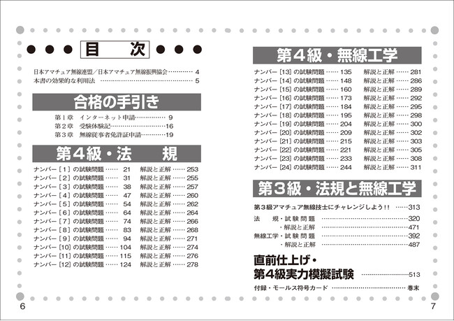 モールス信号を発信できる第3級の新問題も多数収録し、付録として第3級試験用モールス符号カードが付きます。