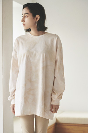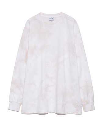 PUMAのアイコンであるテーパードをスリーブにあしらったオーバーサイズのロンTのボディーを使用し、東京のエコテックス(R)認証の染め工場で絞り染めを施した、サステナブルかつ、デザイン性のあるアイテム 。