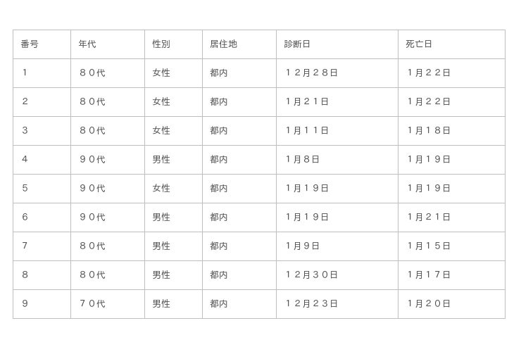 都内で新型コロナウイルスに感染した方が死亡されましたのでお知らせします。