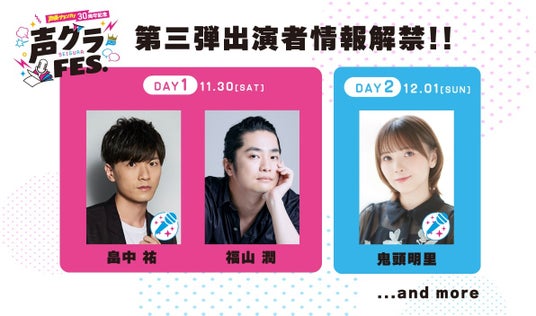 11月30日(土)、12月1日(日)に幕張メッセ イベントホールで開催される、『声優グランプリ』30周年を記念したイベント「声グラFES.」。このたび、第三弾出演者が発表された。