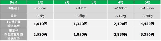 ※荷物1個あたりの料金です