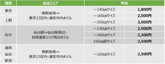 ※仙台駅での受付のみ、東京23区内及び浦安市内のホテルに加え、仙台駅周辺及び秋保温泉エリアの提携ホテルへもお届け可能です。