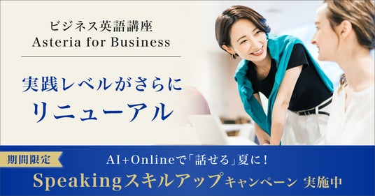 ただいま、入会後、Online Speakingを受講しアンケートに回答すると、Amazonギフトカード2,000円分をプレゼントするキャンペーンを実施中です。この機会に、新しくなったAsteria for Businessで「伝わる」「使える」ビジネス英語を身につけましょう。