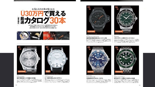 掲載モデルは150本超。『時計Begin』編集スタッフが自信を持ってお薦めする、買って後悔のない、アンダー30万円(税抜き)の時計のみを紹介しています。
