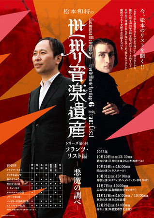 世界音楽遺産実行委員会主催(岡山公演除く)、『松本和将の世界音楽遺産 シリーズ第6回 フランツ・リスト編-悪魔の調べ-』が全国6都市にて開催されます。