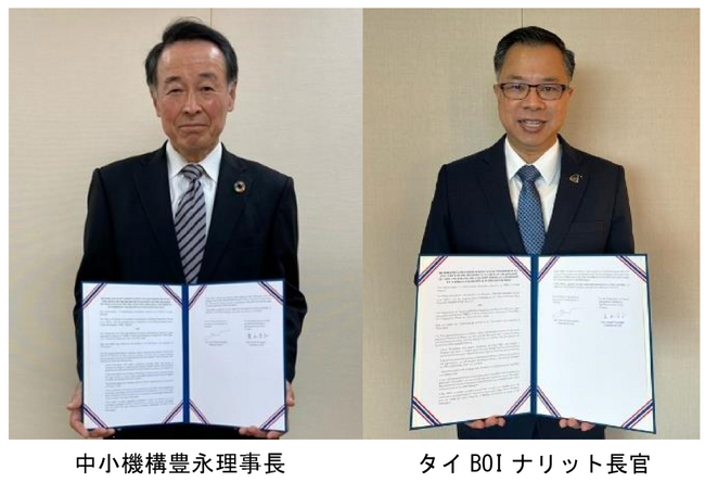 独立行政法人中小企業基盤整備機構(理事長:豊永厚志 本部:東京都港区)は、タイ王国(タイ)の投資誘致機関であるタイ投資委員会(The Board of Investment of the Kingdom of Thailand:BOI)のナリット・タードサティーラサック(Narit Therdsteerasukdi)長官来日の機を捉え、12月18日(月曜)に更なる連携に向け覚書(MOU)を締結しました。両機関は両国の中小企業・スタートアップのビジネスおよび投資促進に向け連携を一層深め、支援体制を強化することで合意しました。