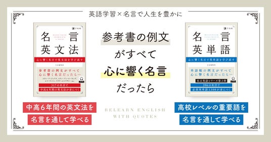誰もが知る著名人から、知る人ぞ知る偉人まで。仕事に活きる、前向きになれる、背中を押してくれる…あなたの心に留めておきたい、お気に入りの名言がきっと見つかる『名言英文法』と『名言英単語』を手にとり、この夏、あなたも英語学習×名言で、人生を豊かにしてみませんか。