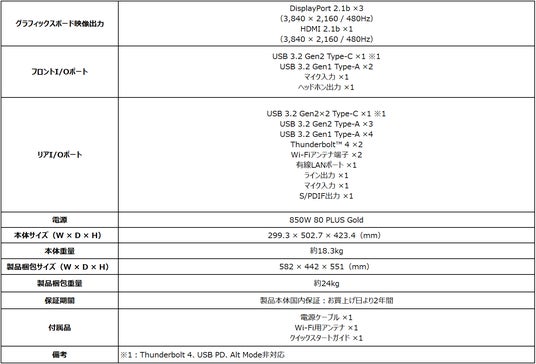Thunderbolt 4・5G LAN・Wi-Fi 7など豊富なインターフェースに対応