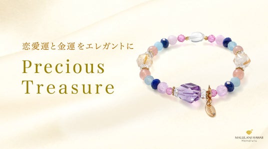 ハワイ発祥の天然石アクセサリーブランド「マルラニハワイ」より、厄除けや金運をもたらすと伝えられる「ルチルクオーツ」を組み込んだ、恋愛や健康を願うパワーストーンブレスレット「プレシャストレジャー」を販売開始いたしました。