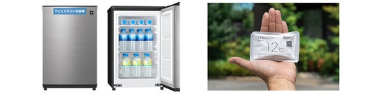左から、「アイススラリー冷蔵庫」、「適温蓄冷材」